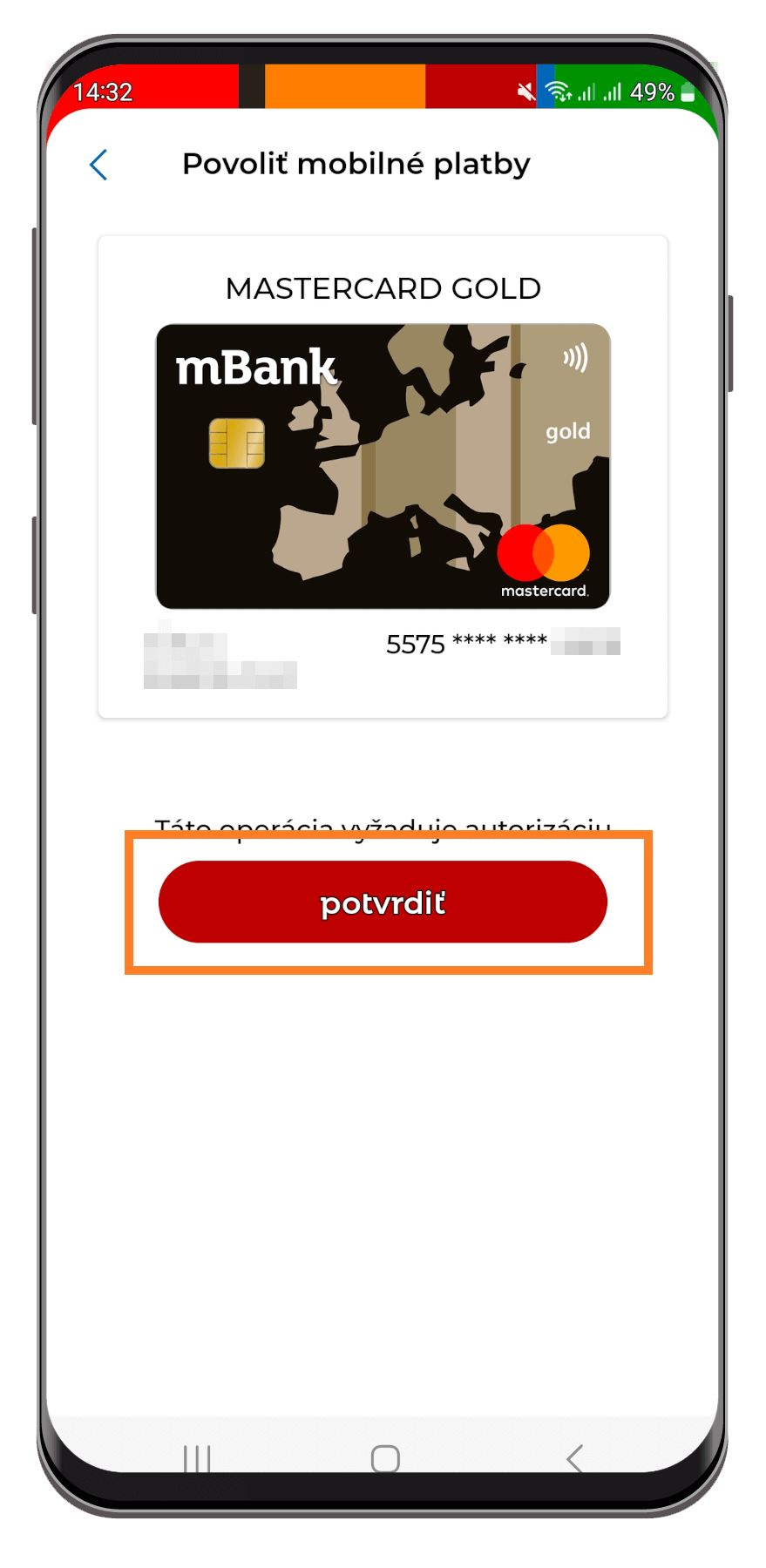 3. Skontrolujte, či ste si vybrali správnu kartu a po kliknutí na Potvrdiť a zadaní PIN kódu k apke môžete pokračovať.