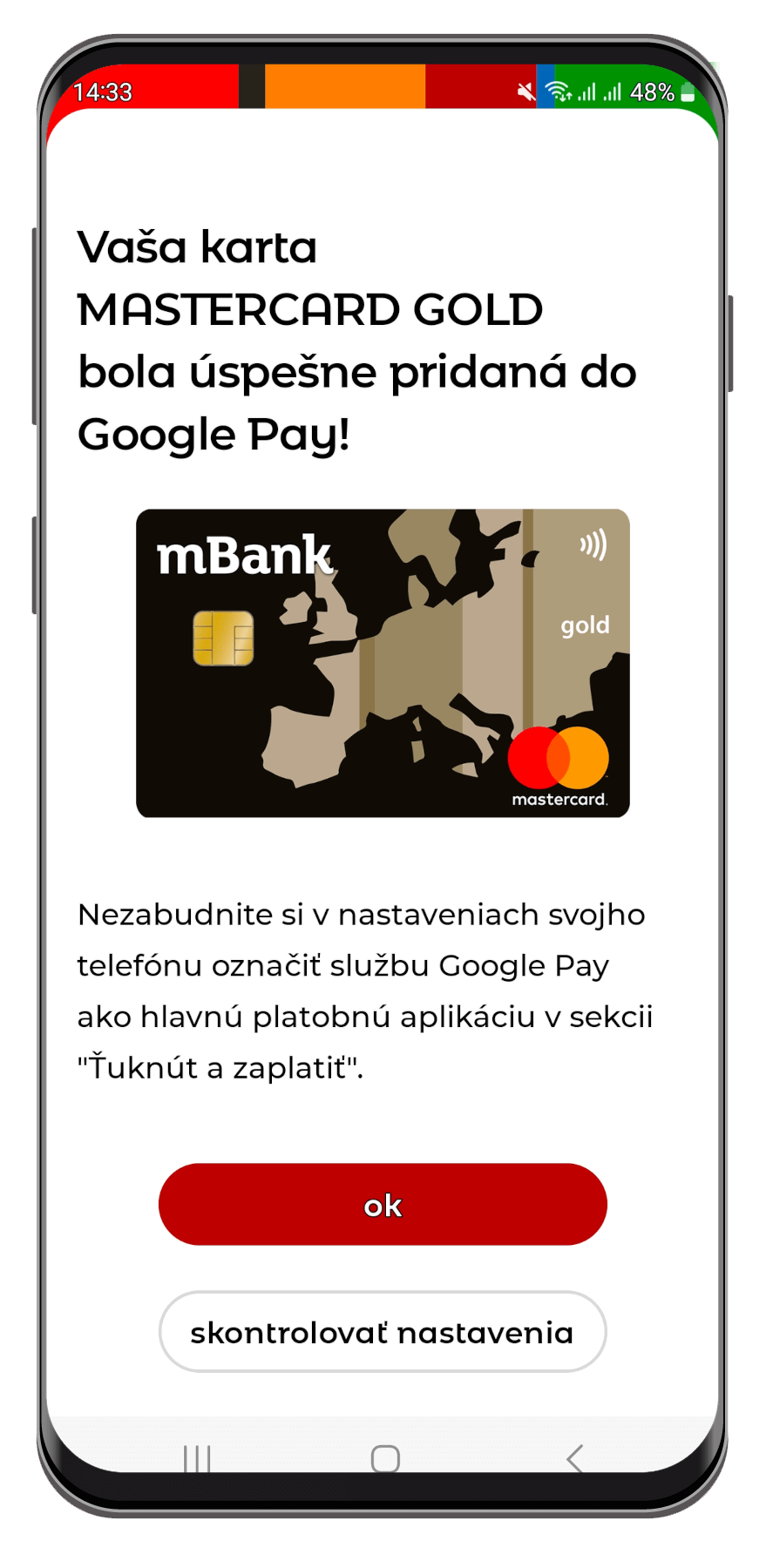 5. Hotovo. Vaša karta je pridaná do Google Pay a vy môžete platiť mobilom.