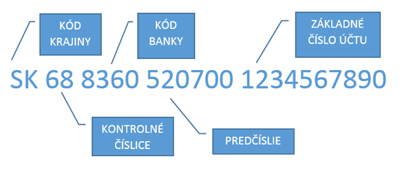 IBAN tvar slovenského účtu sa skladá vždy z 24 znakov