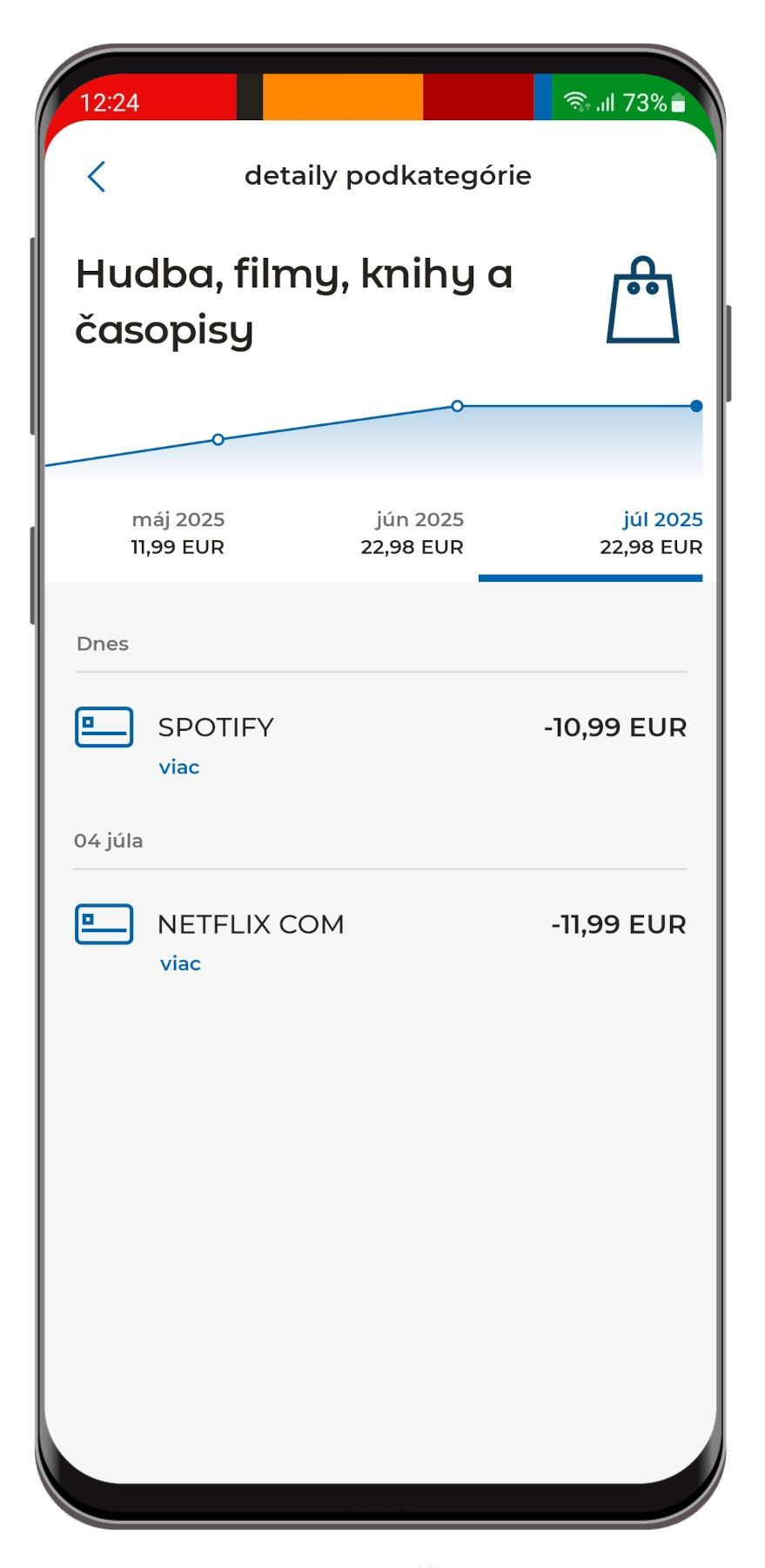 5. Po kliknutí na podkategóriu uvidíte podrobné informácie o platbách vo vybranom období.