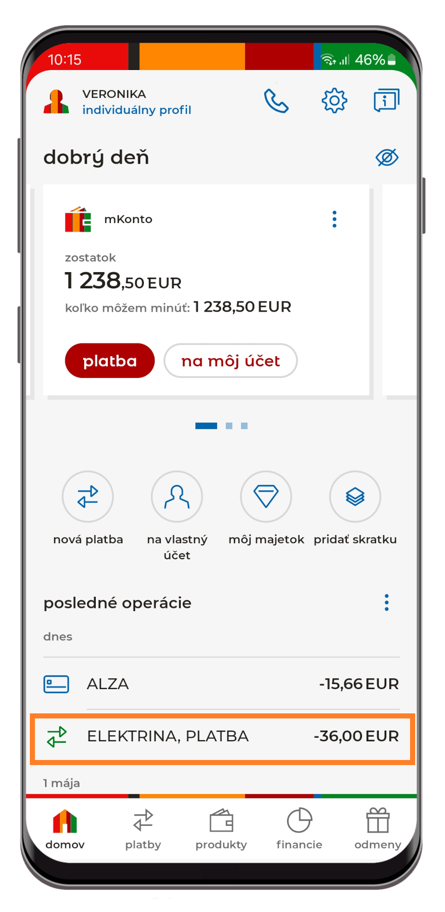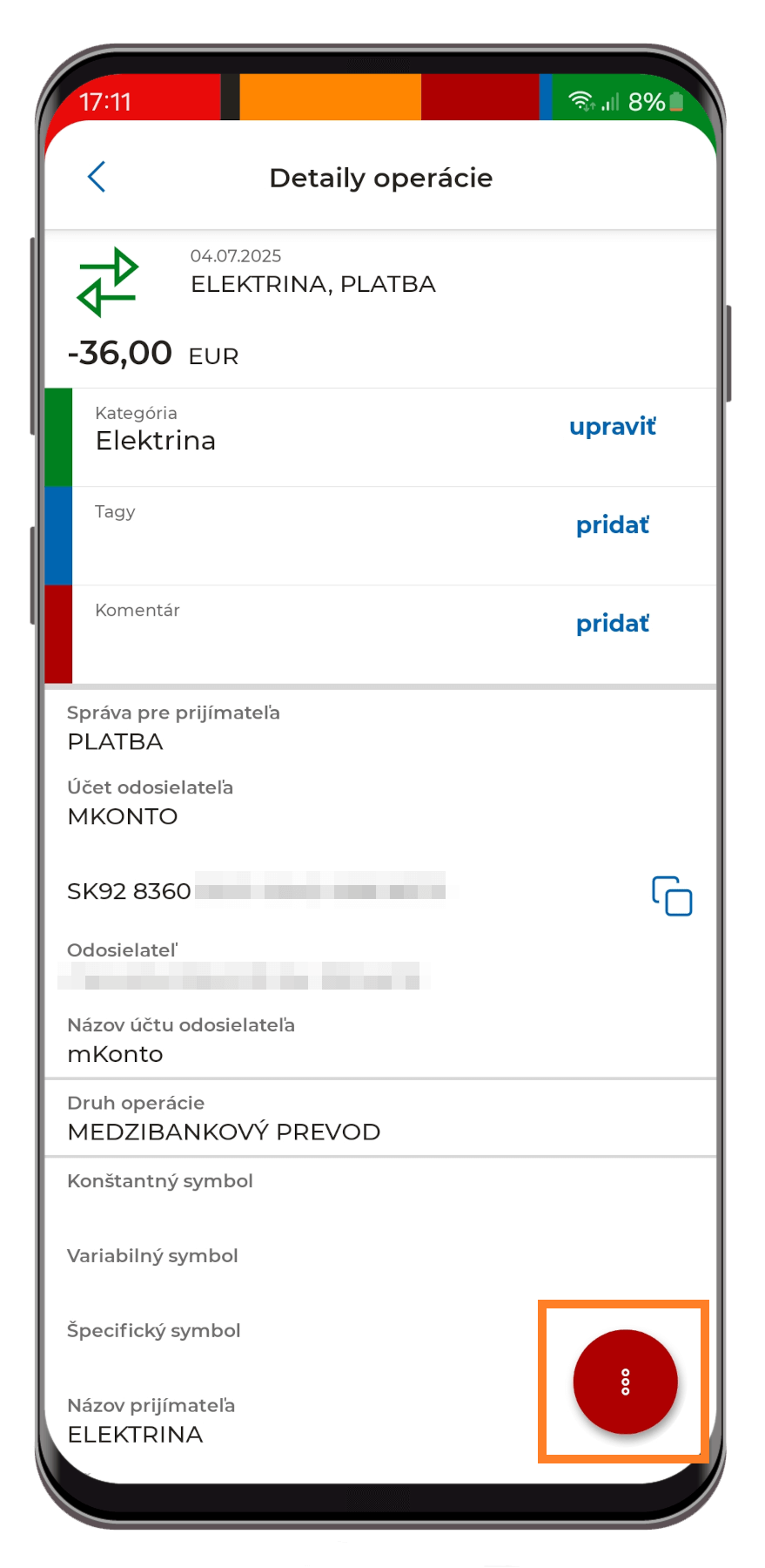 1. Najprv si v histórii nájdite príslušnú platbu a kliknite na ňu pre zobrazenie podrobností.