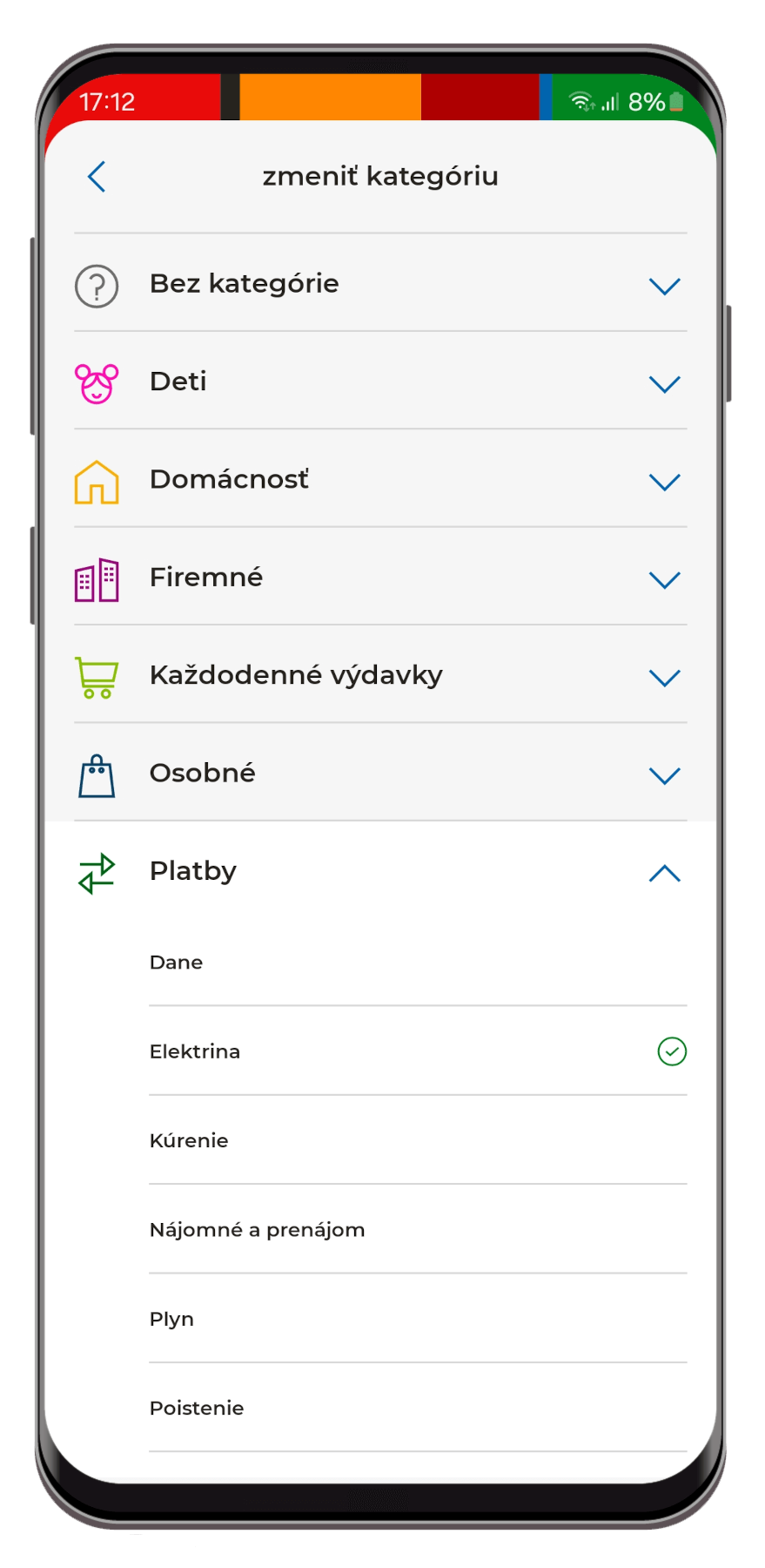 Platby sa do kategórií radia automaticky, ale vy máte kedykoľvek možnosť to jednoducho zmeniť.