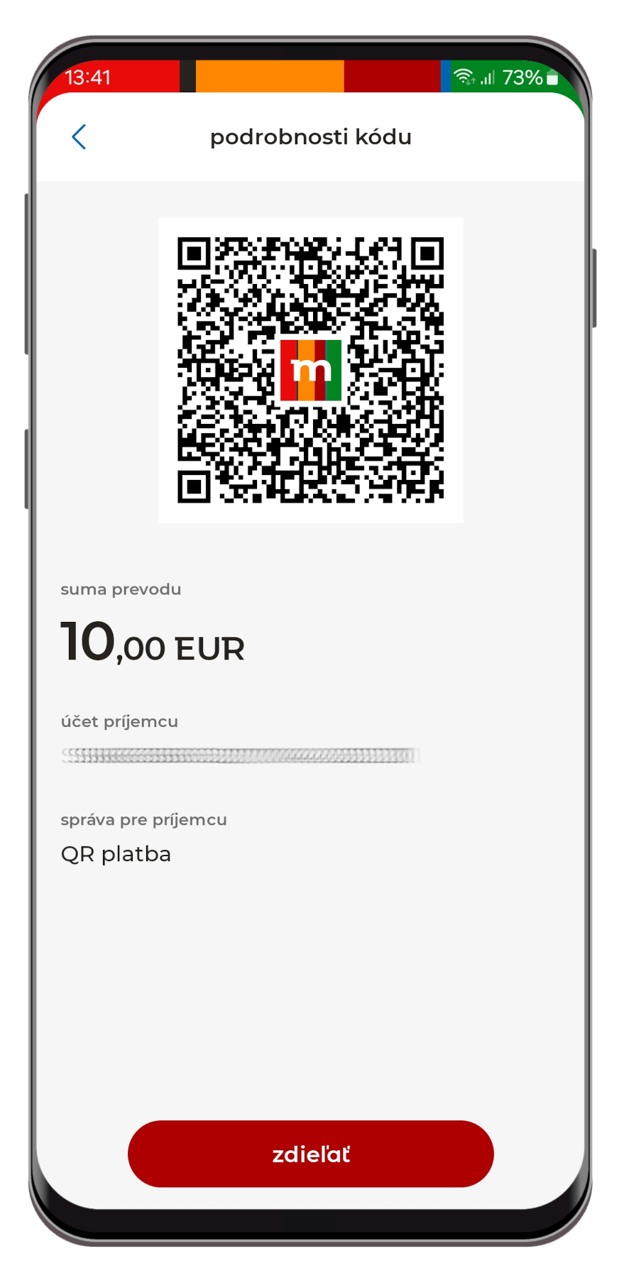 - Alebo si potrebujete preposlať peniaze s priateľmi? Nemusíte hľadať a posielať číslo svojho účtu, v aplikácii im pár klikmi pripravíte QR kód, ktorý stačí naskenovať, a peniaze môžu putovať na váš účet.