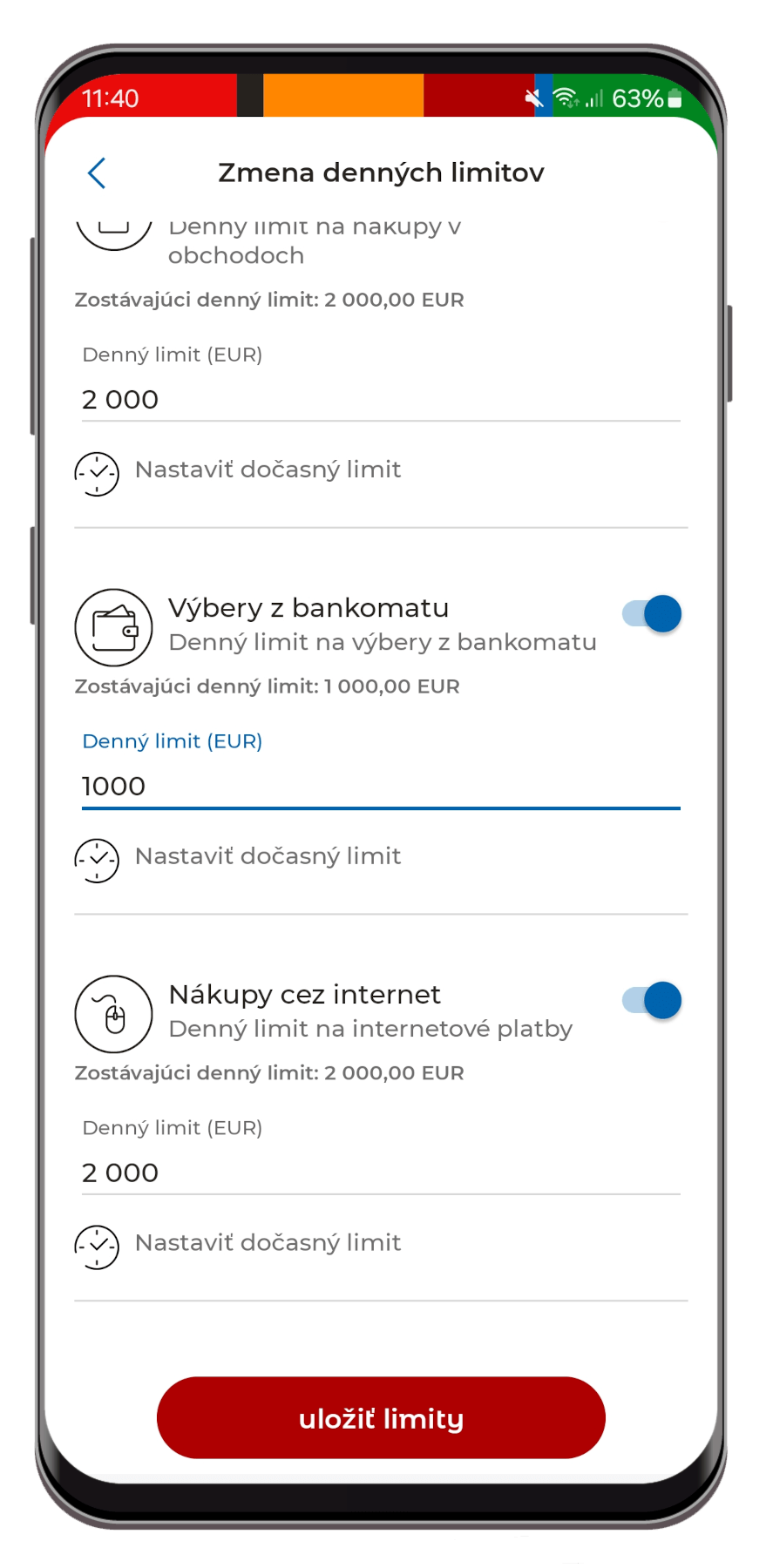 3. Nastavte si denné limity pre nákupy v obchodoch, výbery z bankomatu alebo nákupy cez internet.