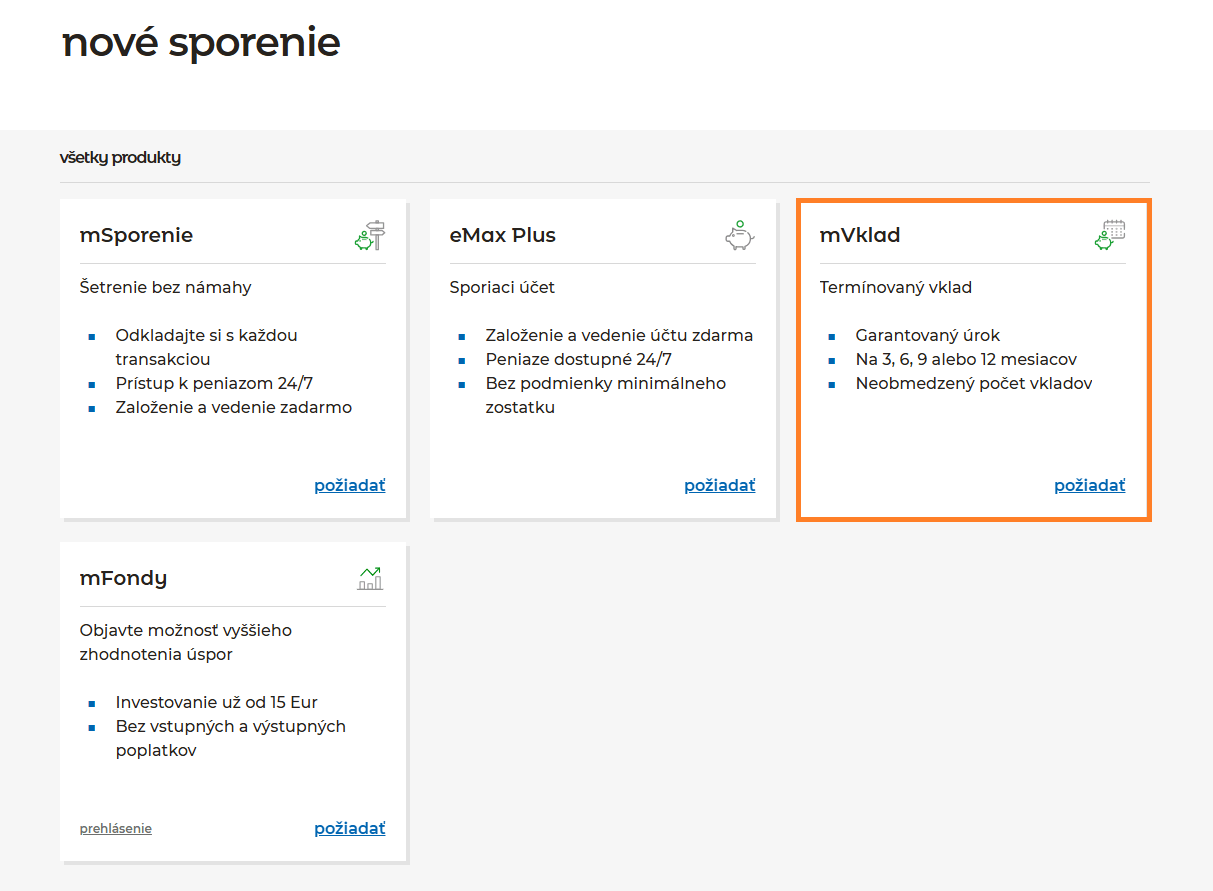 - Kliknite na dlaždicu mVklad a budete presmerovaní priamo do žiadosti.