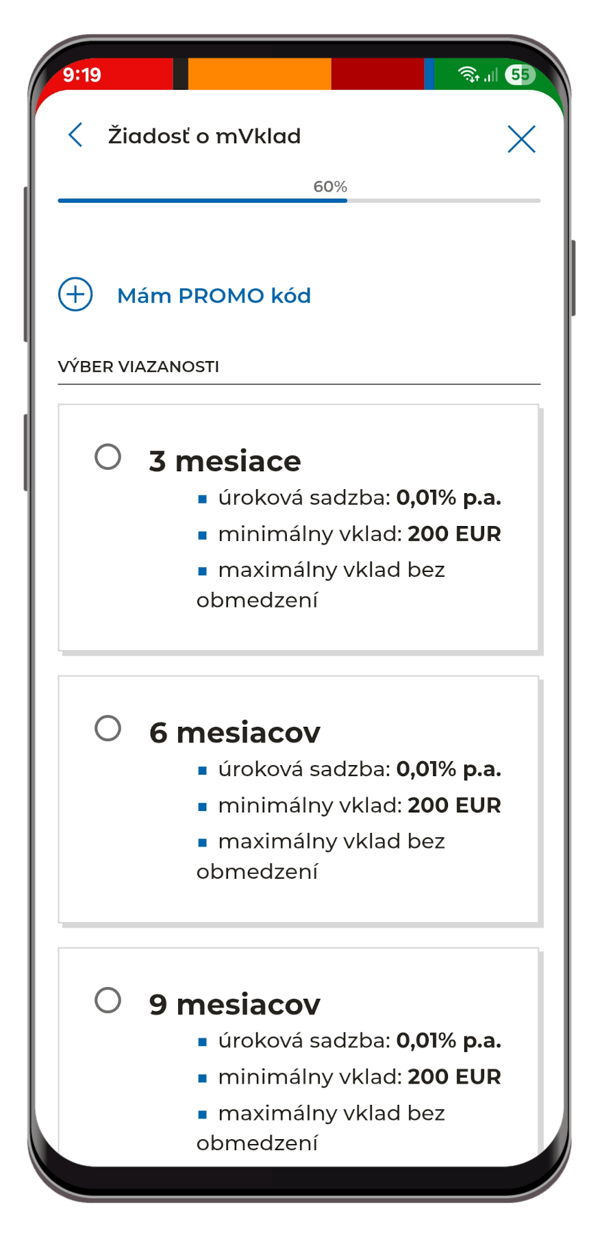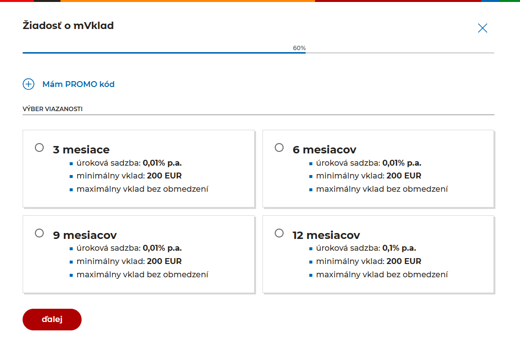 - Zvoľte si dĺžku viazanosti, ktorá vám najviac vyhovuje a kliknite na ďalej.