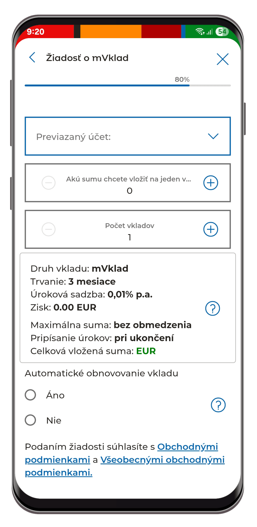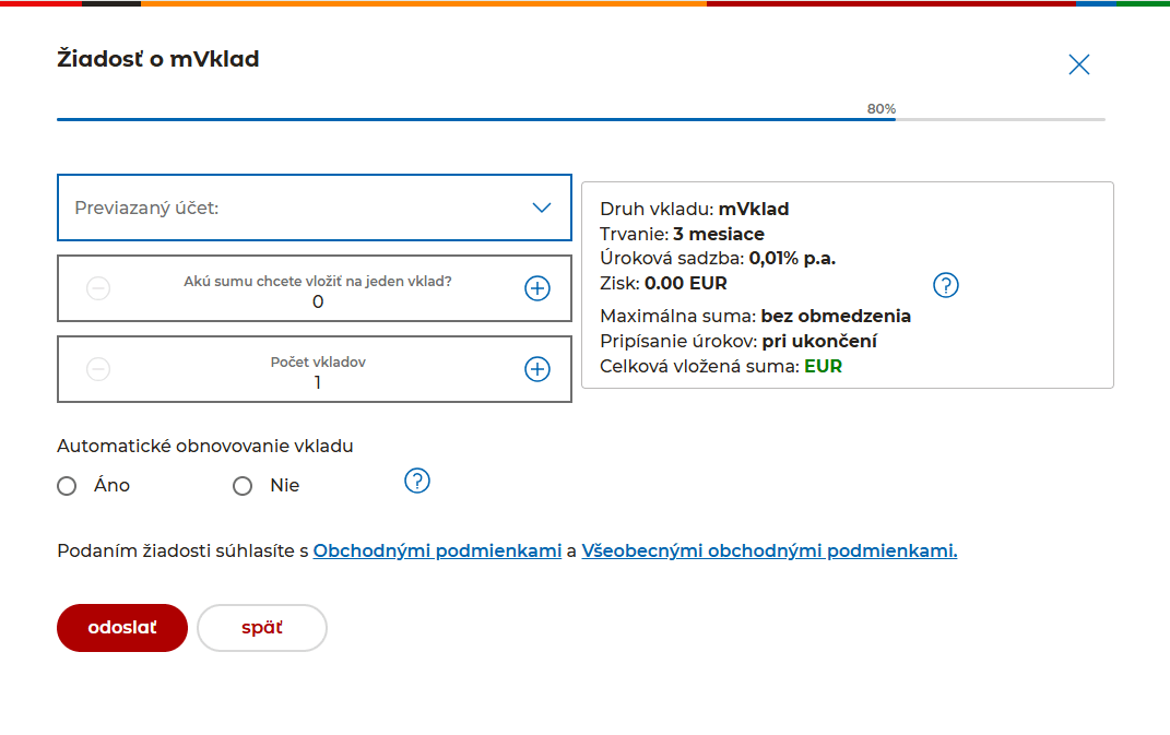 - Nakoniec všetko potvrďte pomocou tlačidla odoslať. Váš termínovaný vklad mVklad je založený.